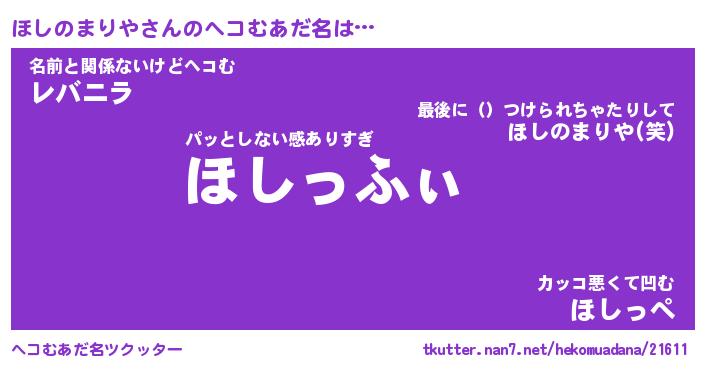 | 胡散臭い通販商品みたいなあだ名 | 『モテモテ間違いなし霊験あらたかなお札…その名も「ほしのまりや」』 |