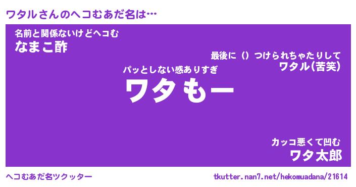 | ファンタジー風あだ名 | 『ワタフェル』『エターナルワタルー』 |