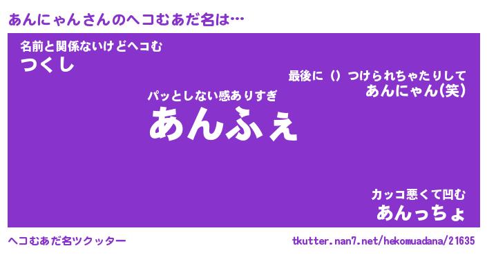 | ファンタジー風あだ名 | 『アンフェル』『エターナルアンニャンー』 |
