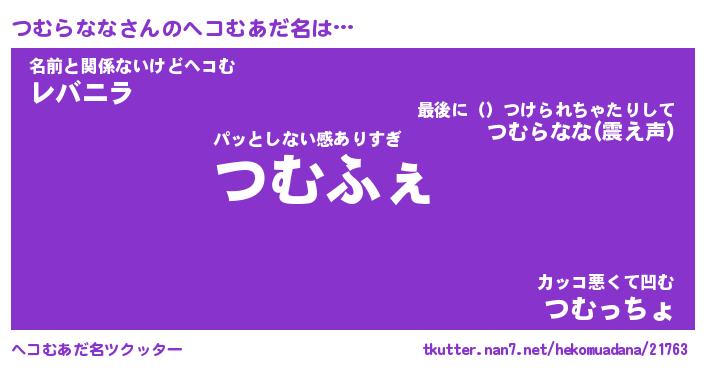 | ポケモン風あだ名 | 『ツムチュウ』『ツムラダネ』 |