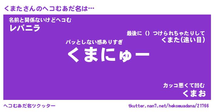 | ヒーロー風カッコイイあだ名 | 『スーパークマタ』『ウルトラくまたマン』 |