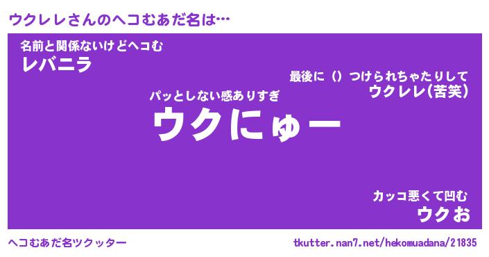 | ポケモン風あだ名 | 『ウクチュウ』『ウクレダネ』 |