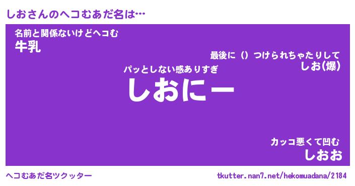 | 男性向けラノベタイトル風あだ名 | 『しおの憂鬱』『ノーゲーム・ノーシオ』 |