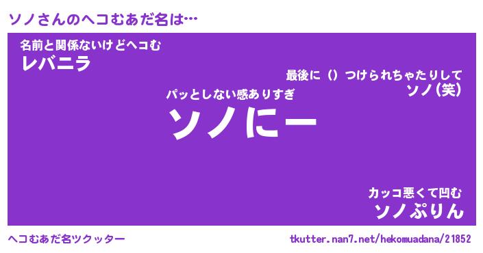 | ポケモン風あだ名 | 『ソノチュウ』『ソノダネ』『ヒソノ』 |