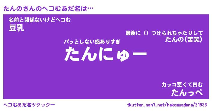 | ポケモン風あだ名 | 『タンチュウ』『タンノダネ』 |