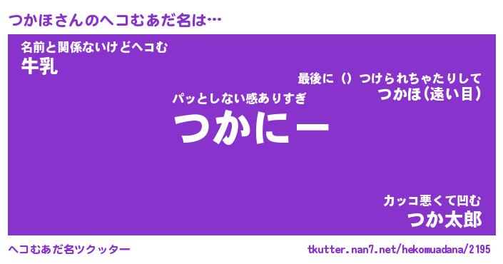 | 意味不明あだ名 | 『ペロリンつかほ』『つかほフォーエバー』 |