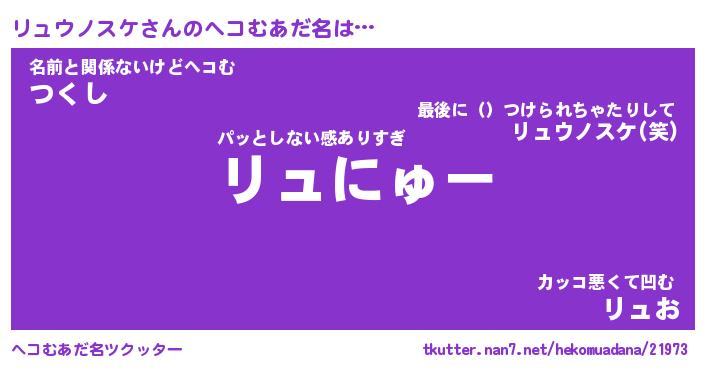 | ヒーロー風カッコイイあだ名 | 『スーパーリュウノスケ』『幻影騎士リュ』 |