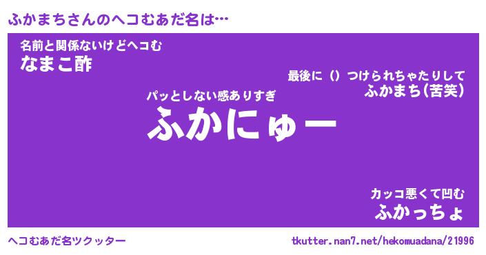 | ファンタジー風あだ名 | 『フカフェル』『エターナルフカマチー』 |