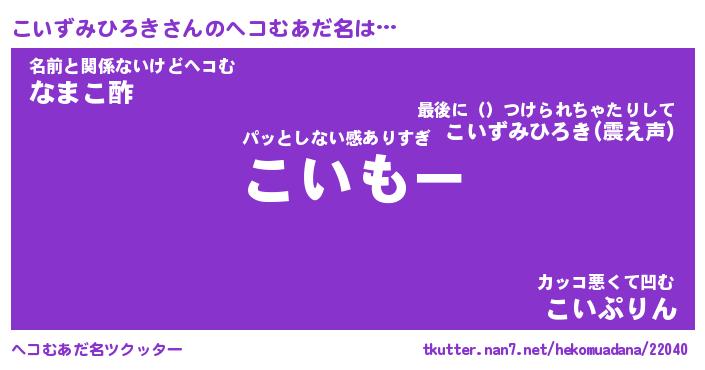 | 胡散臭い通販商品みたいなあだ名 | 『必ず成功する霊験あらたかなお札…その名も「こいずみひろき」』 |