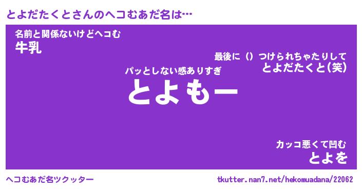 | 胡散臭い通販商品みたいなあだ名 | 『モテモテ間違いなし霊験あらたかなお札…その名も「とよだたくと」』 |