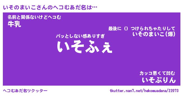 | 意味不明あだ名 | 『ペロリンいそのまいこ』 |