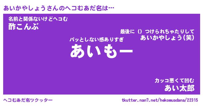 | 意味不明あだ名 | 『ペロリンあいかやしょう』 |