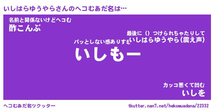 | 伝説のあだ名 | 『封印されしスナイパーいしはらゆうやら』 |