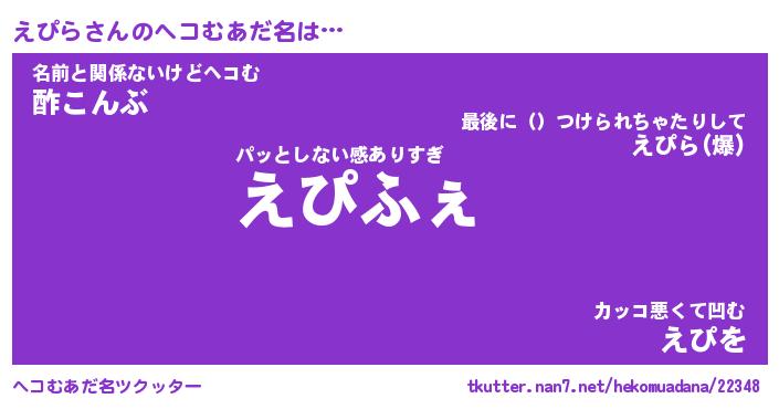 | 2回繰り返すあだ名 | 『えぴえぴ』『ええぴぴ』『ぬぷぬぷ』 |