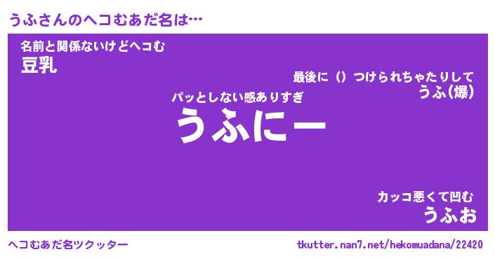 | ポケモン風あだ名 | 『ウフチュウ』『ウフダネ』『ヒウフ』 |