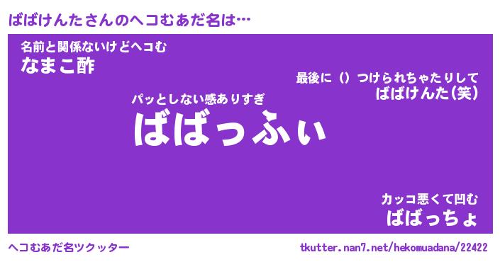 | ファンタジー風あだ名 | 『ババフェル』『エターナルババケンター』 |