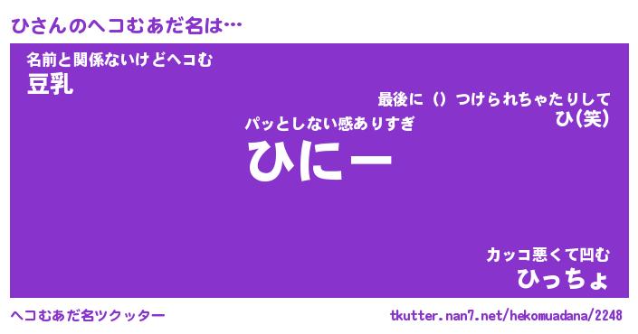 | ポケモン風あだ名 | 『ヒチュウ』『ヒダネ』『ヒヒ』 |