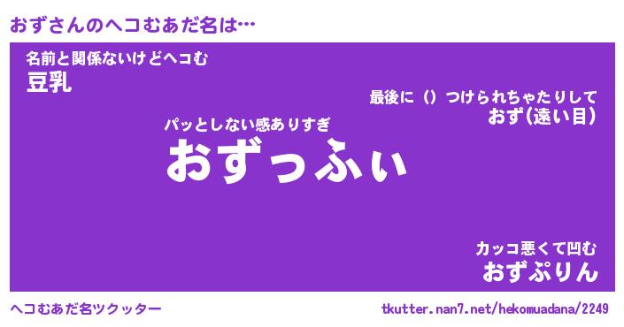 | 2回繰り返すあだ名 | 『おずおず』『おおずず』『あんあん』 |