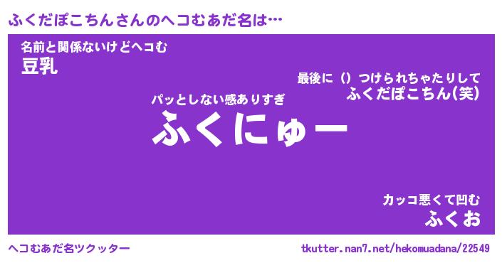 | ポケモン風あだ名 | 『フクチュウ』『フクダダネ』 |