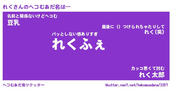 | ポケモン風あだ名 | 『レクチュウ』『レクダネ』『ヒレク』 |