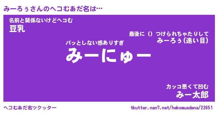 | 意味不明あだ名 | 『ペロリンみーろぅ』『永久保存みーろぅ』 |
