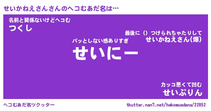 | 男性向けラノベタイトル風あだ名 | 『せいかねえさんの憂鬱』 |