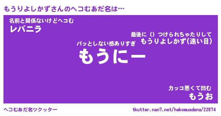 | 男性向けラノベタイトル風あだ名 | 『もうりよしかずの憂鬱』 |