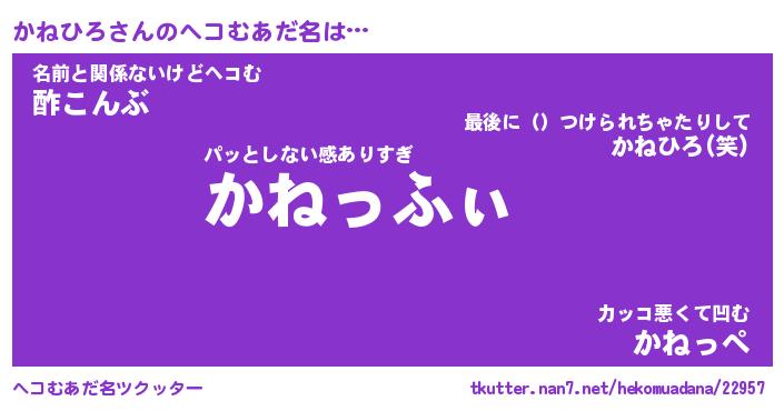 | 意味不明あだ名 | 『ペロリンかねひろ』『永久保存かねひろ』 |