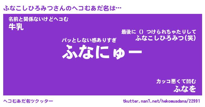 | 意味不明あだ名 | 『ペロリンふなこしひろみつ』 |