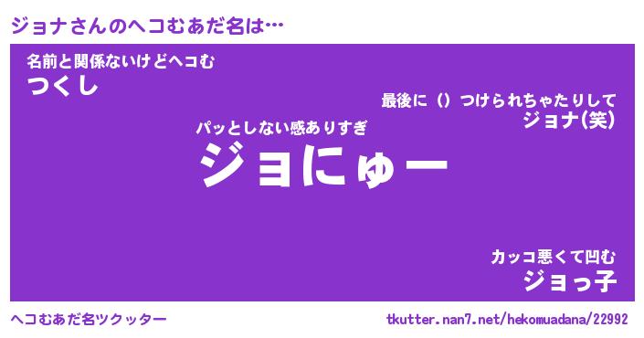 | 男性向けラノベタイトル風あだ名 | 『ジョナの憂鬱』 |