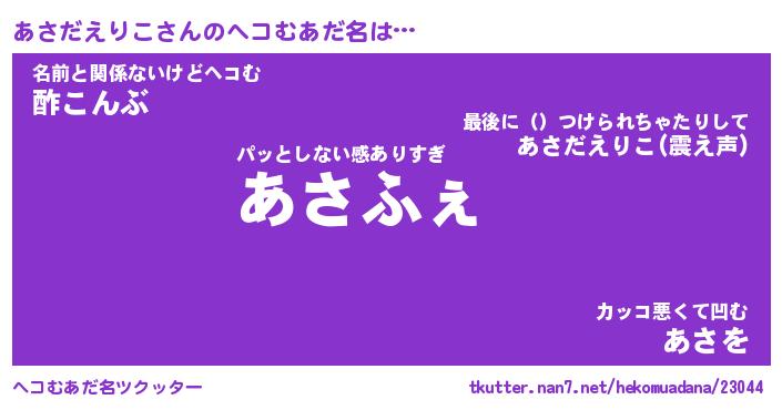 | 欧米人風あだ名 | 『マイケルあさだえりこ』 |