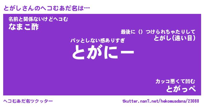 | ポケモン風あだ名 | 『トガチュウ』『トガシダネ』 |