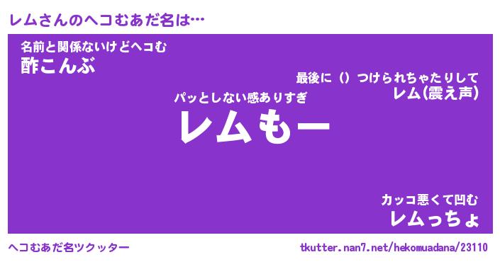 | ポケモン風あだ名 | 『レムチュウ』『レムダネ』『ヒレム』 |