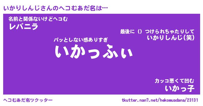 | 男性向けラノベタイトル風あだ名 | 『いかりしんじの憂鬱』 |
