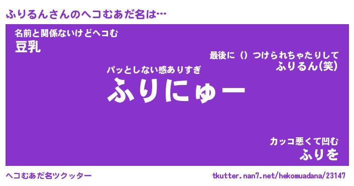 | 男性向けラノベタイトル風あだ名 | 『ふりるんの憂鬱』 |