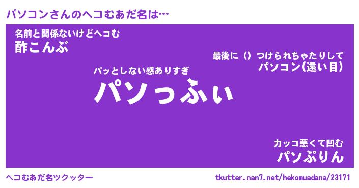 | ファンタジー風あだ名 | 『パソフェル』『エターナルパソコンー』 |