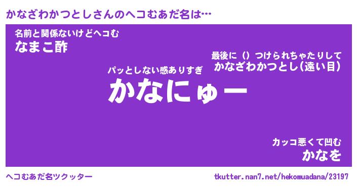 | 男性向けラノベタイトル風あだ名 | 『カナザワカツトシアートオンライン』 |