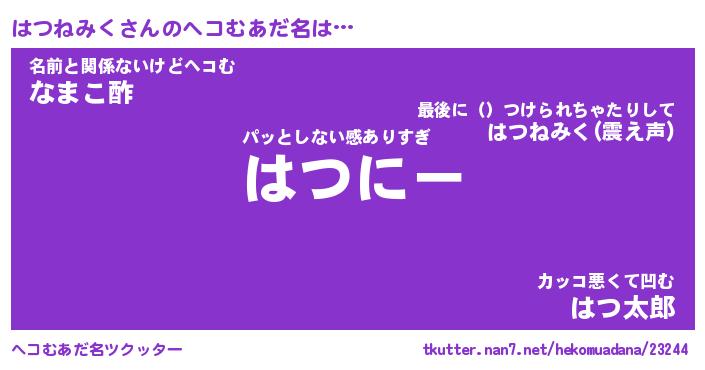 | ファンタジー風あだ名 | 『ハツフェル』『エターナルハツネミクー』 |