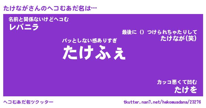 | ポケモン風あだ名 | 『タケチュウ』『タケナダネ』 |