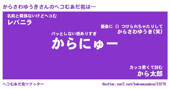 | ヒーロー風カッコイイあだ名 | 『スーパーカラサワユウキ』 |