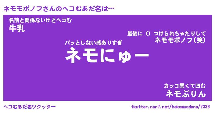 | 胡散臭い通販商品みたいなあだ名 | 『モテモテ間違いなし水晶球…その名も「ネモモポノフ」』 |
