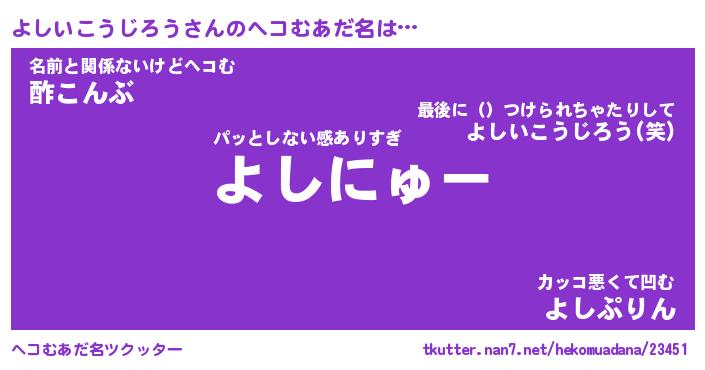 | ヒーロー風カッコイイあだ名 | 『スーパーヨシイコウジロウ』 |
