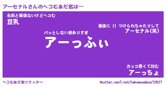 | ヒーロー風カッコイイあだ名 | 『スーパーアーセナル』『暗黒騎士アー』 |
