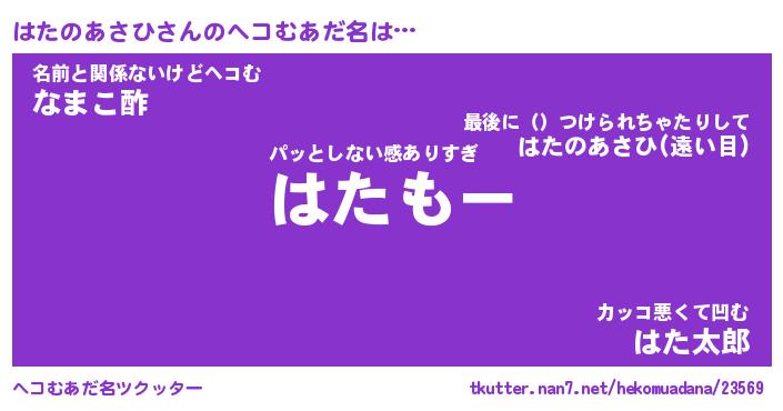 | ヒーロー風カッコイイあだ名 | 『スーパーハタノアサヒ』『幻影騎士ハタ』 |