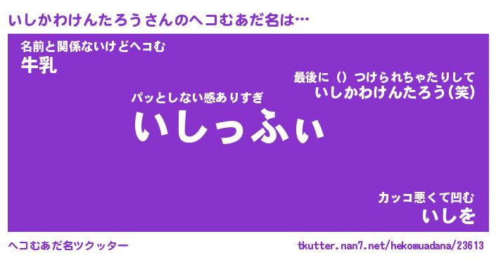 | 肩書あだ名 | 『いしかわけんたろう御曹司』 |