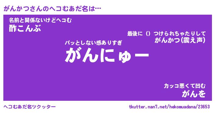 | ポケモン風あだ名 | 『ガンチュウ』『ガンカダネ』 |