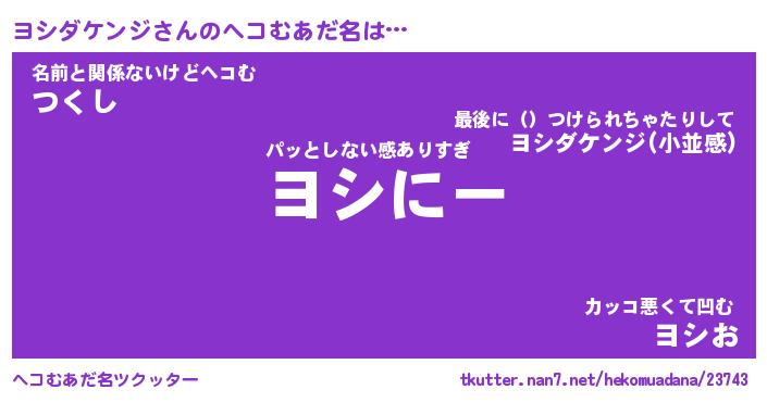 | ヒーロー風カッコイイあだ名 | 『スーパーヨシダケンジ』『黄金騎士ヨシ』 |