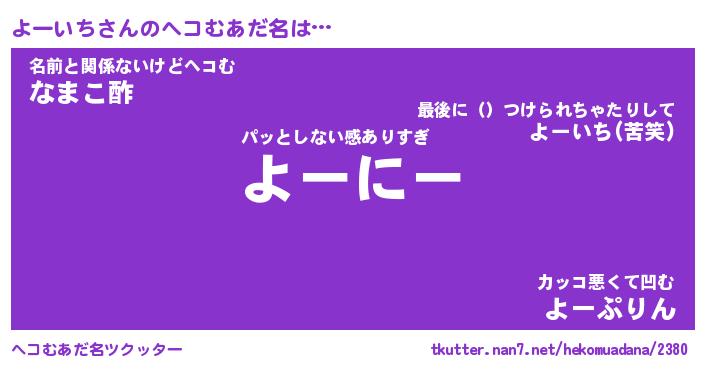 | 意味不明あだ名 | 『ペロリンよーいち』『永久保存よーいち』 |
