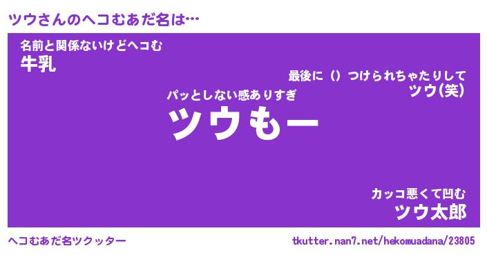 | 2回繰り返すあだ名 | 『ツウツウ』『ツツウウ』『あんあん』 |