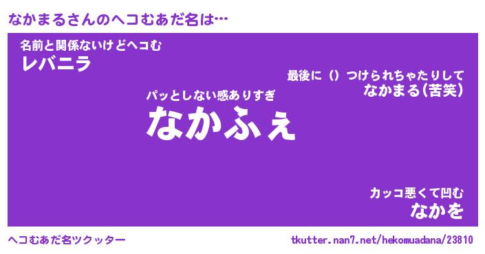 | ファンタジー風あだ名 | 『ナカフェル』『エターナルナカマルー』 |